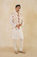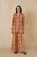Step out in this comfortable and chic Rust Ikat Tunic and Pants Set. This two-piece outfit features a flowy, sleeveless tunic with a square neckline, designed for a relaxed and flattering fit. The tunic is adorned with a vibrant diamond ikat print in rich shades of rust, cream, and olive green. It is paired with off-white dhoti-style pants that have the same striking ikat pattern, along with a detailed border at the cuffs. This set is a modern yet ethnic option for a casual day out or a semi-formal event.
